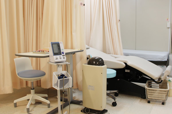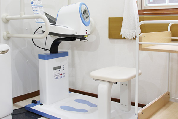 レントゲン検査 胸部・腹部・骨のレントゲン撮影、骨密度検査を行います。 血圧測定 座ったまま体重と血圧が同時に測定できる機械です。 待合室に設置してありますので、ご利用ください。 処置室 血液検査や点滴などを行います。